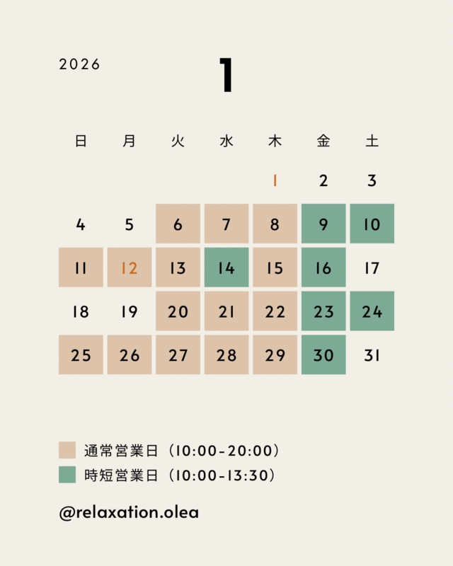 新潟県長岡市にあるリラクゼーションサロンOlea(オレア)は「オーダーメイド施術」「癒し」にこだわったサロンです。Oleaのリラクゼーションで、心も体もリラックス。あなたに合った、あなただけのオーダーメイド施術で至福の時間をお過ごしください。
