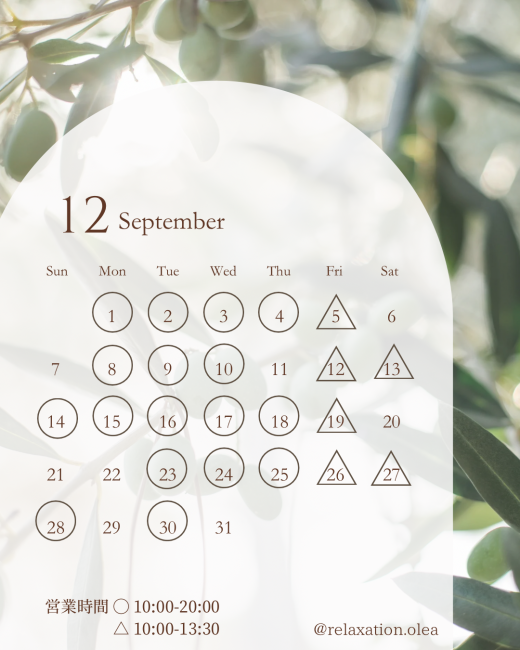 一年の疲れが出やすいこの季節、心と身体を整える時間をぜひOleaでお過ごしください🌿