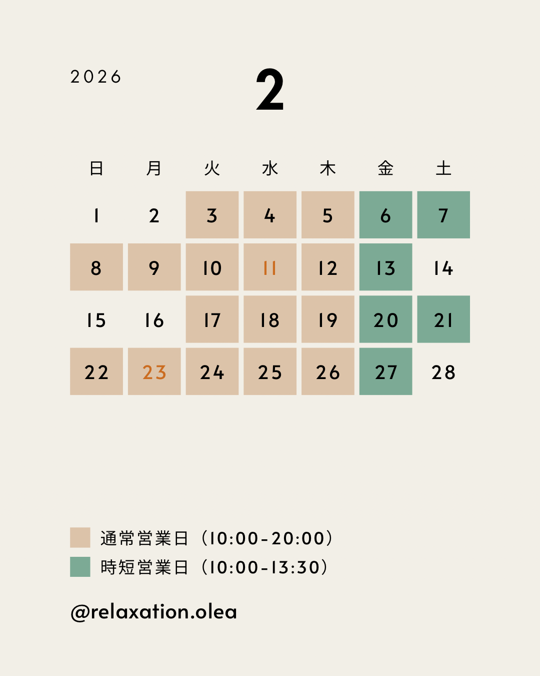 ご自身のメンテナンスにぜひOleaをご利用ください☺️ 2月も皆さまにお会いできるのを楽しみにしています。