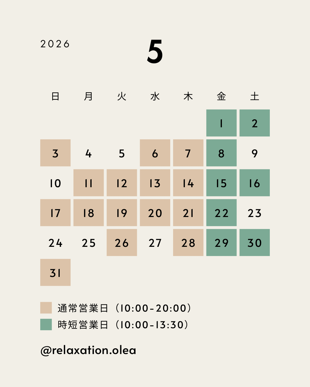 いつもリラクゼーションサロンOleaをご利用いただきありがとうございます。